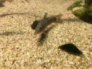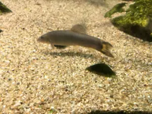 アユモドキは日本固有のコイ目ドジョウ科の淡水魚で、見た目や泳ぎ方がアユ(鮎)にちょっと似ていることから「アユ“もどき”」と呼ばれています。