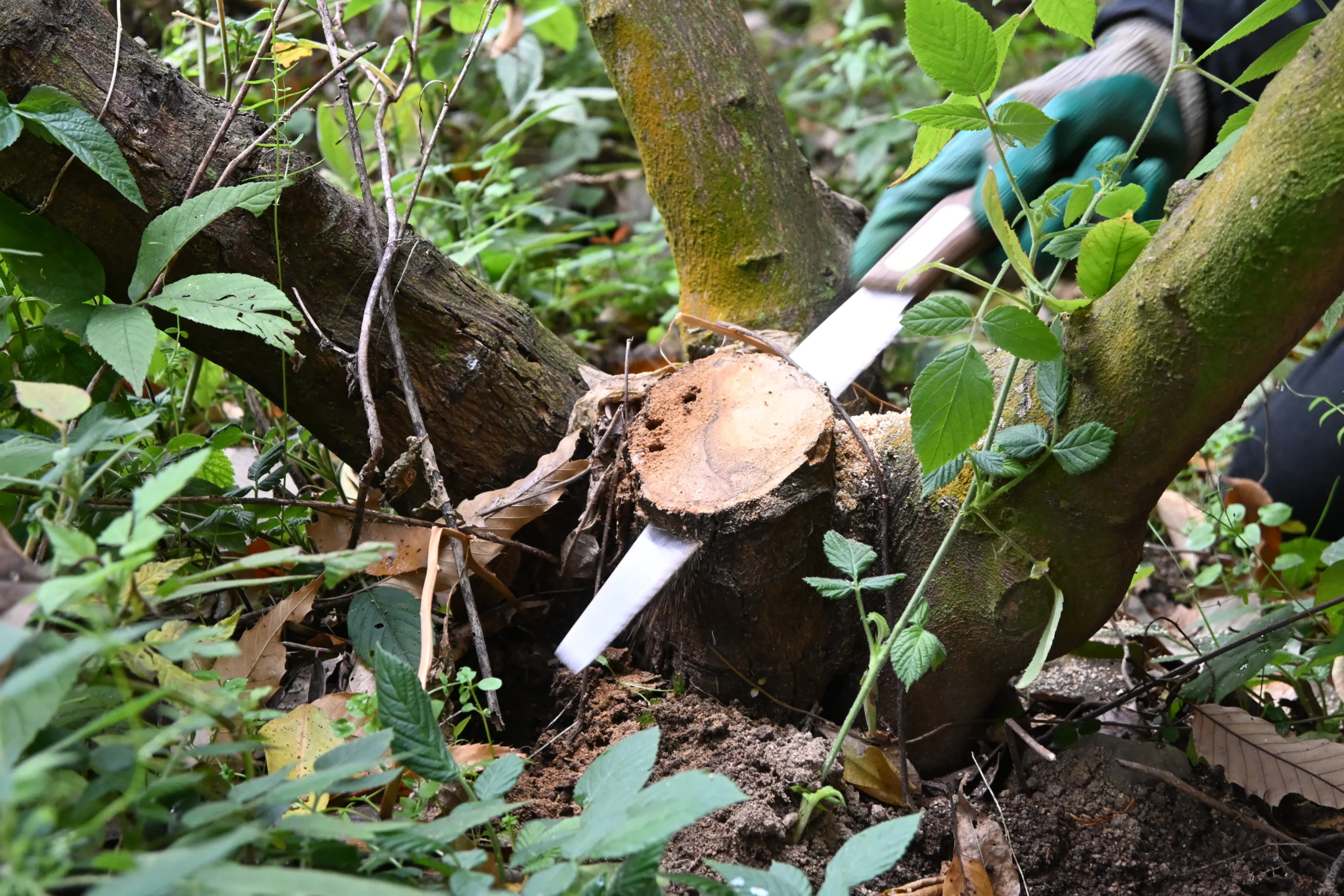 そのうえで、脚立を使ったり、木に登ったりする作業が加わります。