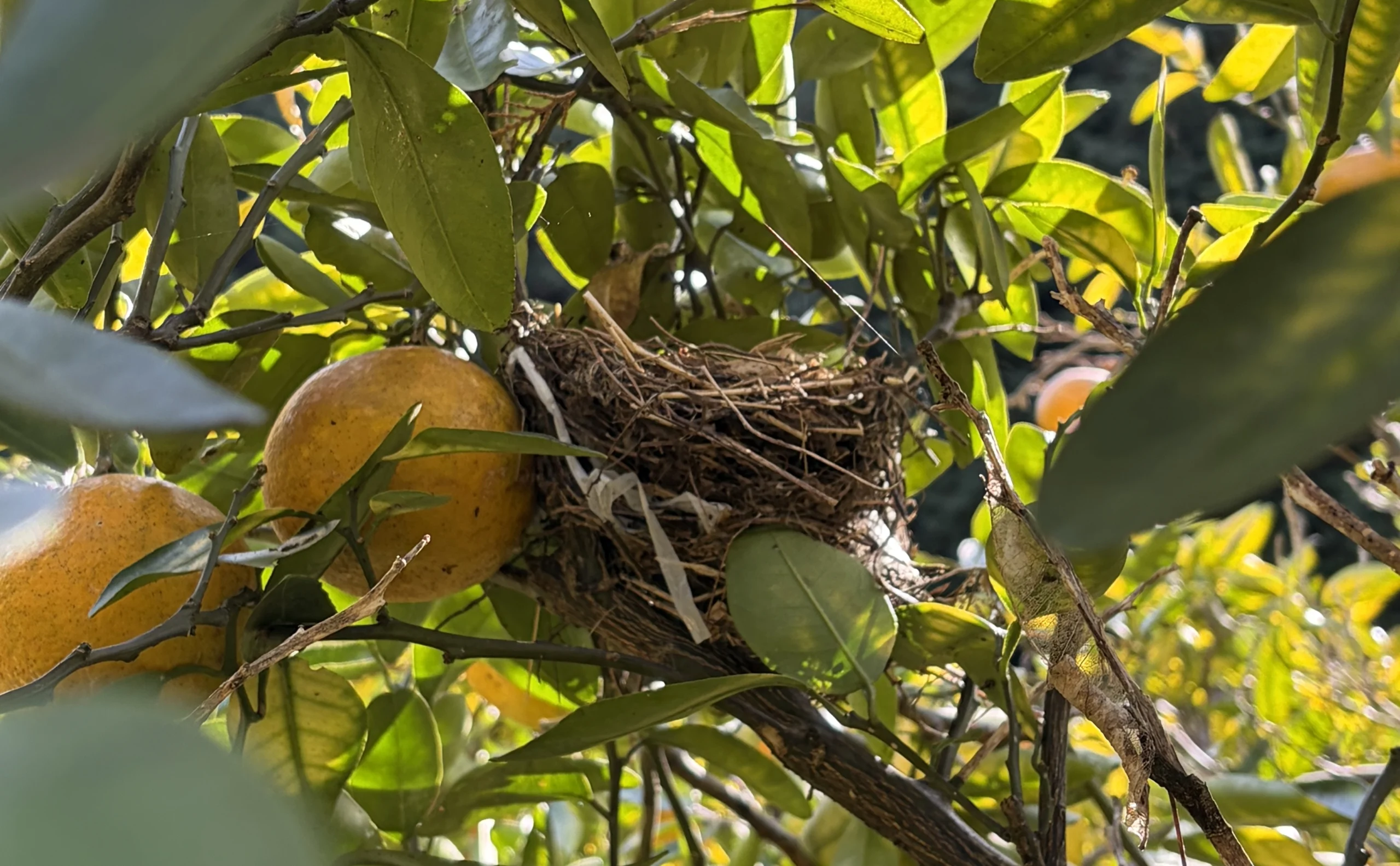 作業していると、手のひらほどの大きさのカマキリや蜘蛛に出会うこともあり、巣立った後の鳥の巣も残っていました。