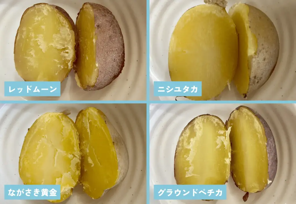 今回食べ比べた「ニシユタカ」「レッドムーン」「ながさき黄金」「グラウンドペチカ」は、それぞれ肉質や食感に違いがあるものの、その差は繊細で、違いをはっきり感じ取るのは正直、難しかったです。