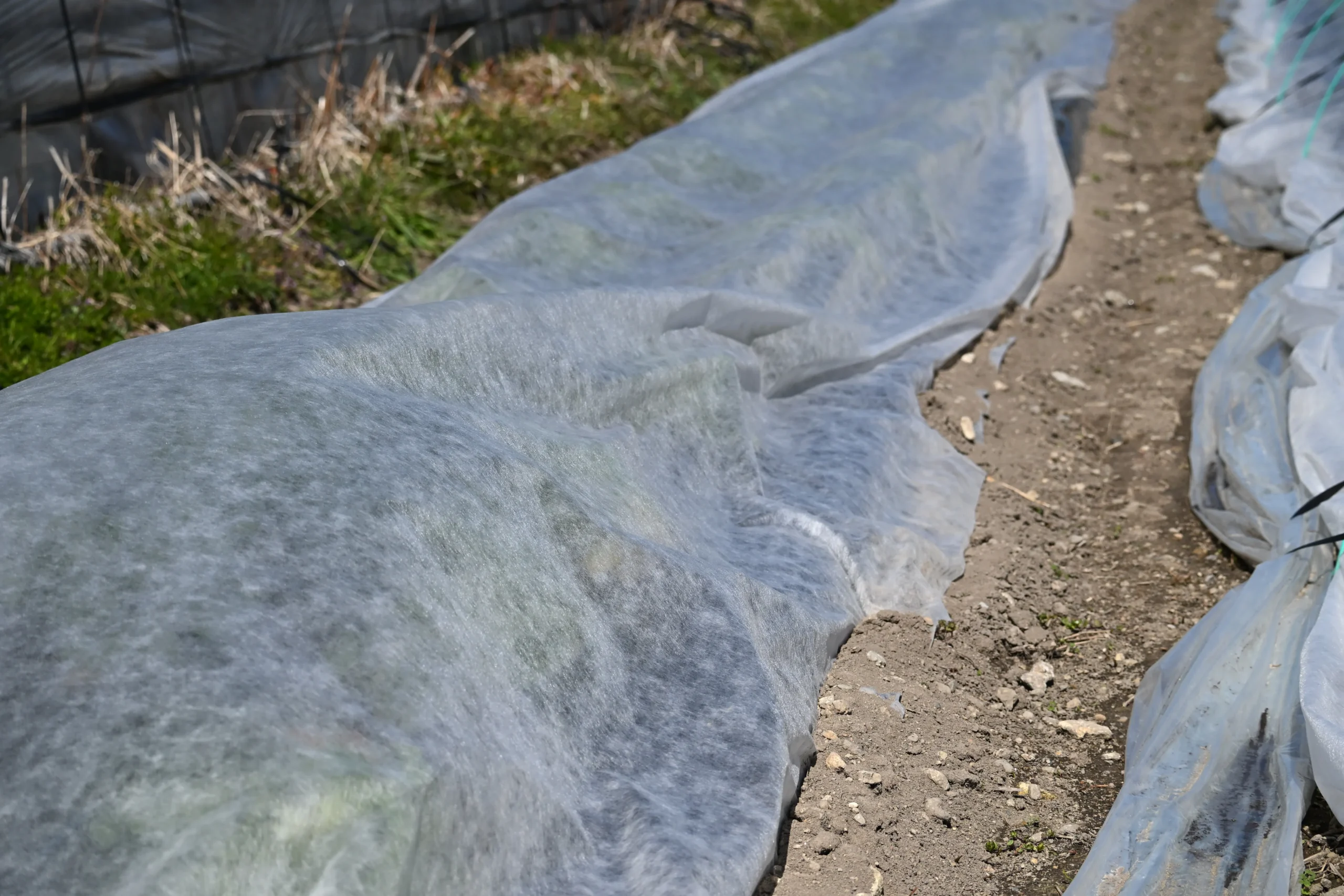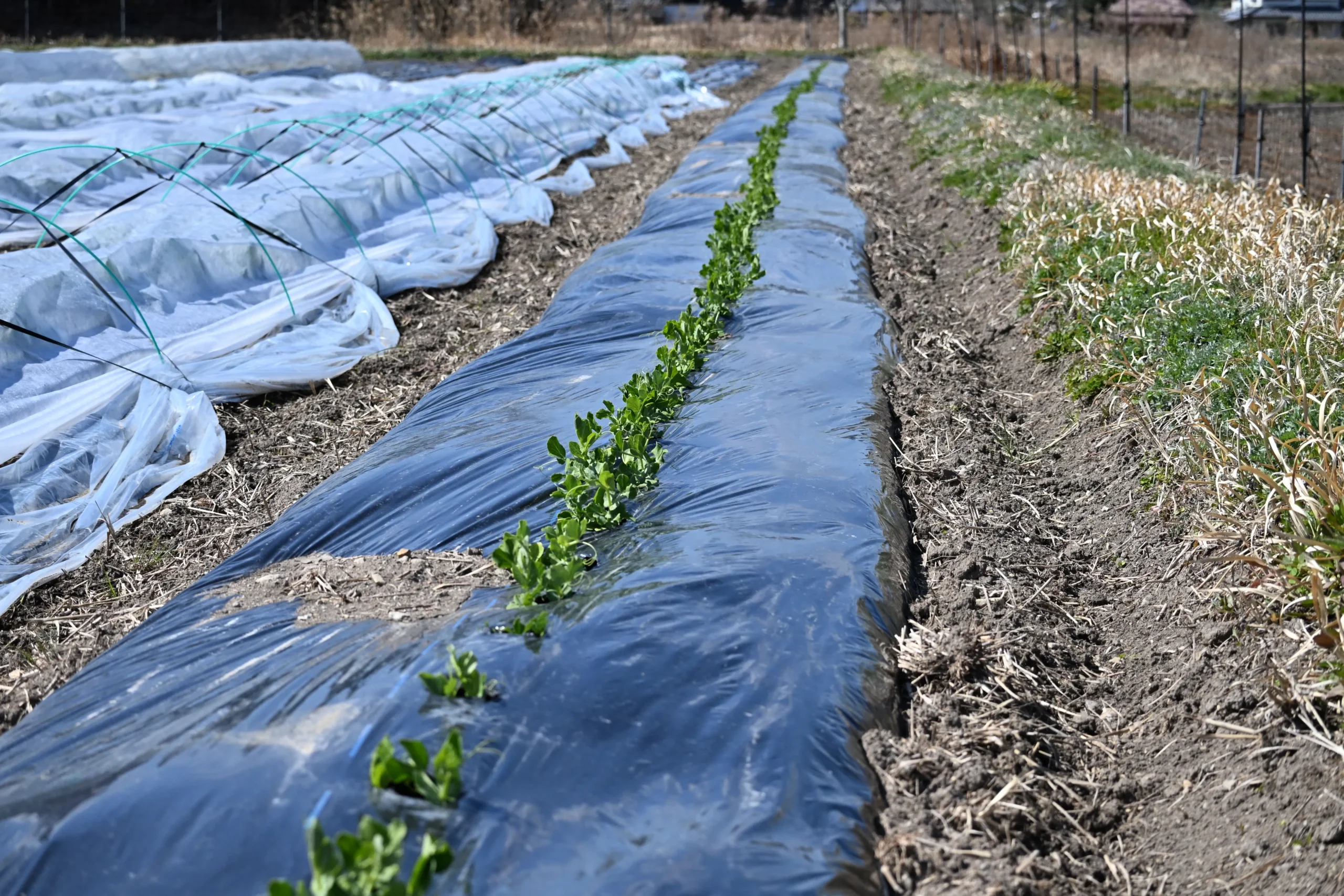 また、不織布は寒さや虫対策に、シルバーマルチはそら豆のアブラ虫除けに活用するなど、農薬に頼らない工夫を重ねています。